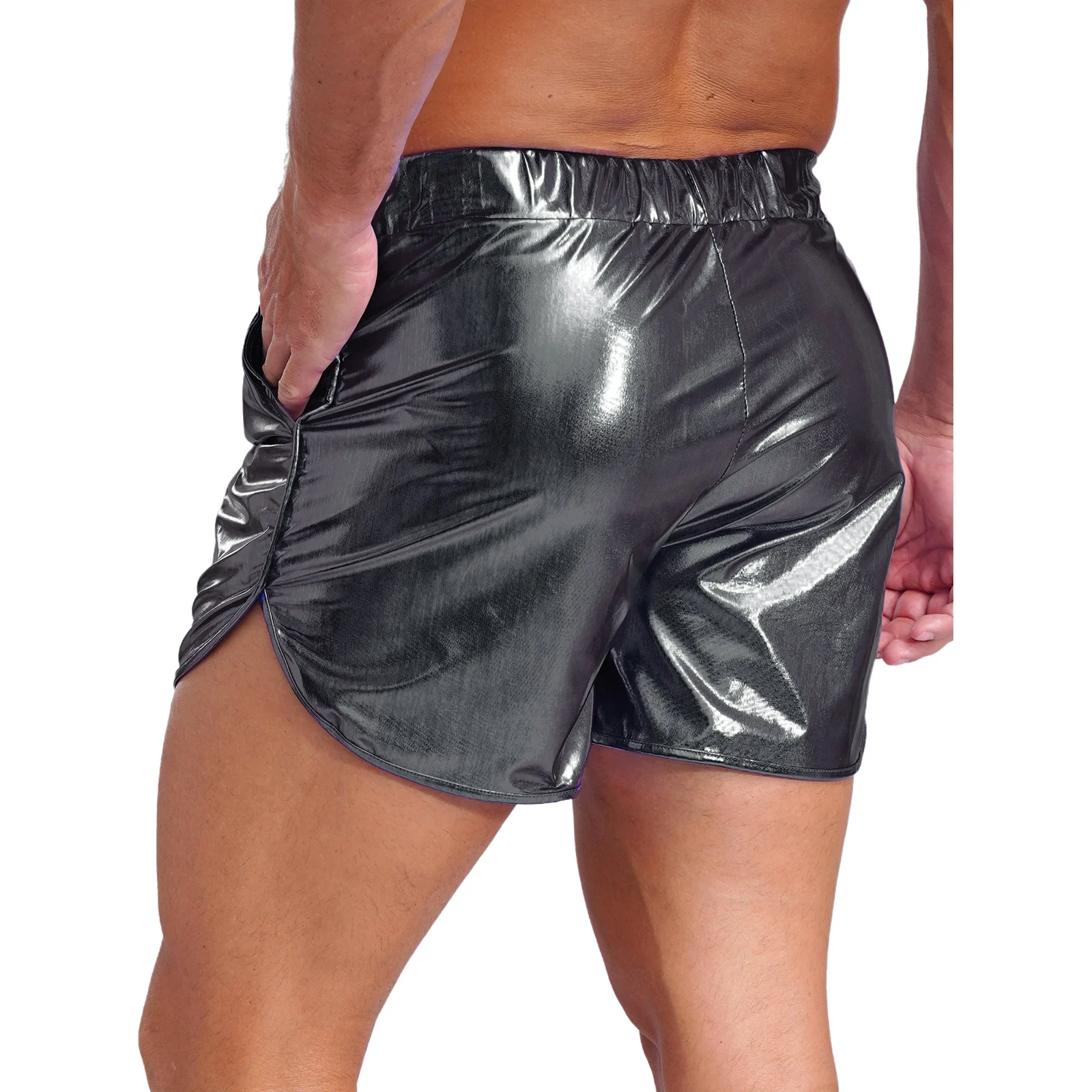 Make a statement at the beach, pool or club with these Mens Side Pockets Slim Fit Swim Shorts. Crafted with a metallic shiny finish, these swim trunks deliver a bold, eye-catching look while remaining versatile for swimming, fitness and nightlife. The slim, form-fitting cut highlights physique and offers a modern silhouette for bodybuilding, yoga or active wear.
