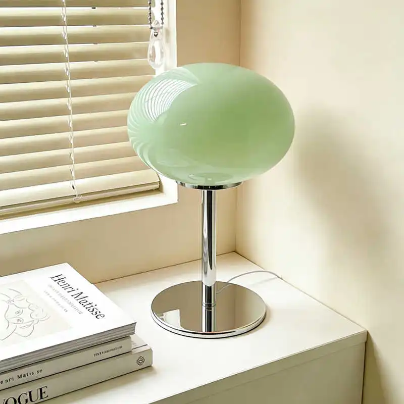 This Mid-Century Vintage Bauhaus Mushroom Glass Table Lamp brings a timeless, minimalist look to living rooms, bedrooms, or bedside tables. The soft, rounded silhouette and warm glass shade diffuse light gently to create a cozy atmosphere without harsh glare—ideal for reading or ambient lighting. Its compact footprint fits neatly on nightstands, consoles, or side tables while adding a touch of retro-modern design.