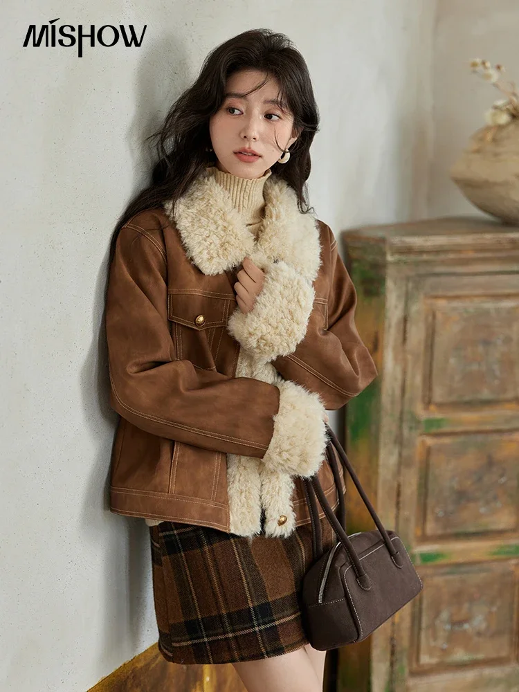 Stay warm in style with the MISHOW Leather Fur Jacket for women. This winter coat blends lamb wool softness and a spliced design for a contemporary look that pairs easily with jeans or tailored trousers. The thickened construction and cotton-lined interior deliver comfortable insulation for cooler days without feeling bulky.