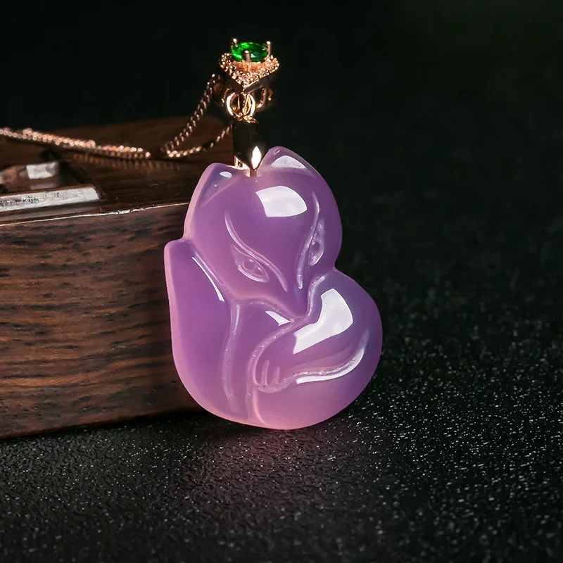– Natural purple agate pendant, hand-carved fox design