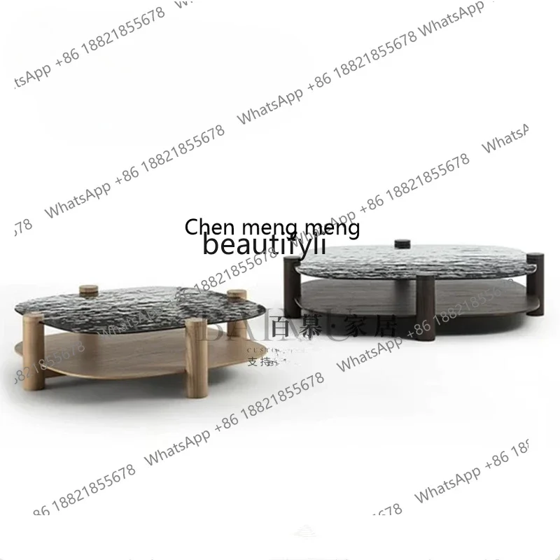 Discover the New Arrival Italian Light Luxury Minimalist Solid Wood Coffee Table — a refined blend of craftsmanship and contemporary design. This coffee table features a solid wood base with clean lines and a minimalist silhouette that complements modern interiors. The hot-melt tempered glass top showcases a subtle water ripple effect, adding an artistic focal point while remaining durable and easy to maintain.