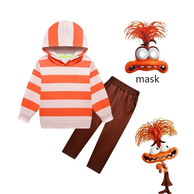 Bring a playful, slightly spooky vibe to Halloween with the New Autumn Anxiety Costume for kids. This set includes a long-sleeve hoodie, matching pants, and a themed mask, designed for easy layering and comfortable all-evening wear. The cozy fabric and relaxed cut let children move freely while trick-or-treating or at school dress-up events.