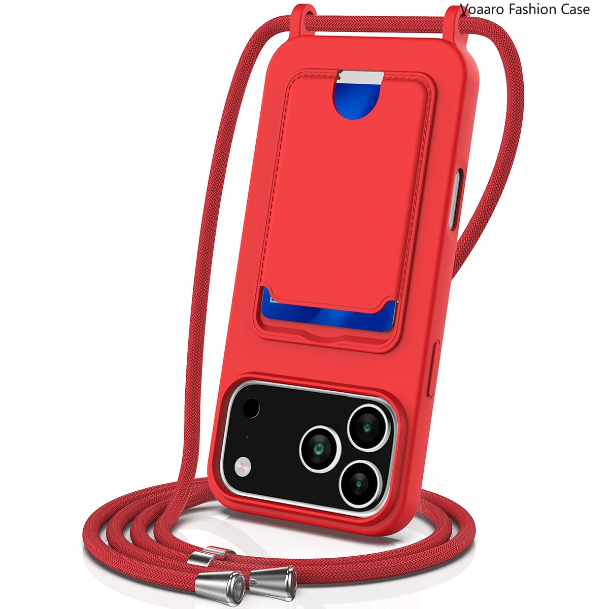 NEW Fashion Candy Colour Portable Card Slot TPU Case for Apple Iphone 17 Pro Max with Strap Waterproof Protective Cover Funda