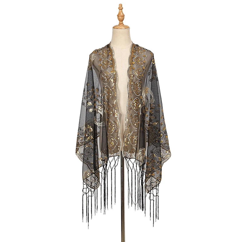 New Glitter Sequins Shawls and Wraps for Evening Dresses Women’s Mesh Wedding Cape Bridal Bridesmaid Shrugs Fringed Party Shawl