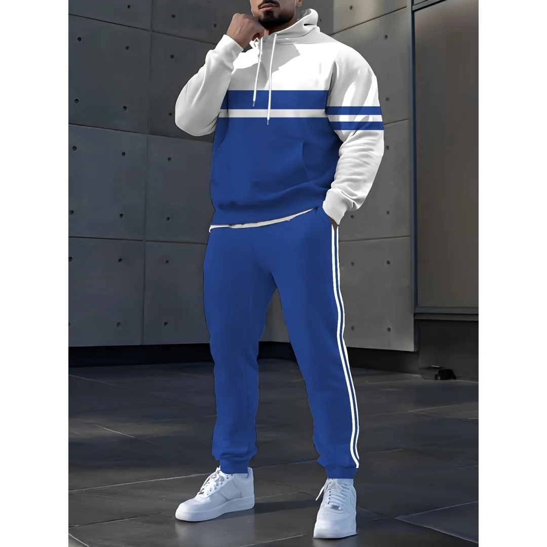New Simple Men Hoodie and Sweatpants Set Strip Pattern Men Hoodie Casual Outdoor Sportswear Quick Drying and Breathable Clothing