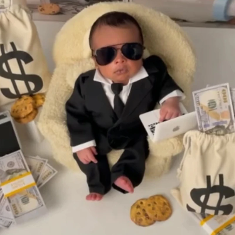 Designed for comfort during shoots, the romper allows for easy diaper changes and gentle movement so your infant stays cozy between poses. The bow tie is a simple, removable accessory that completes the dapper ensemble without fuss.