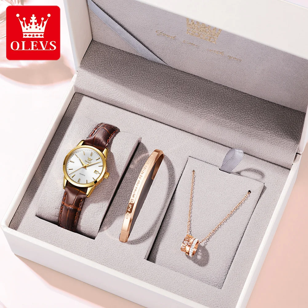 OLEVS Watch 6898 Women Watches Original Elegant Quartz Watch Waterproof Luminous Leather Strap Date Ladies Set Bracelet Watch