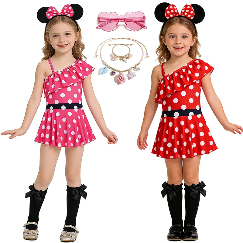 This charming one-piece swimsuit brings playful style and comfortable coverage to summer days at the beach or pool. Designed for little girls, the polka dot pattern and ruffled details add a sweet, classic look that’s perfect for holidays, parties, or everyday swim play. The full-coverage silhouette offers easy movement for splashing, swimming, or sandcastle building.