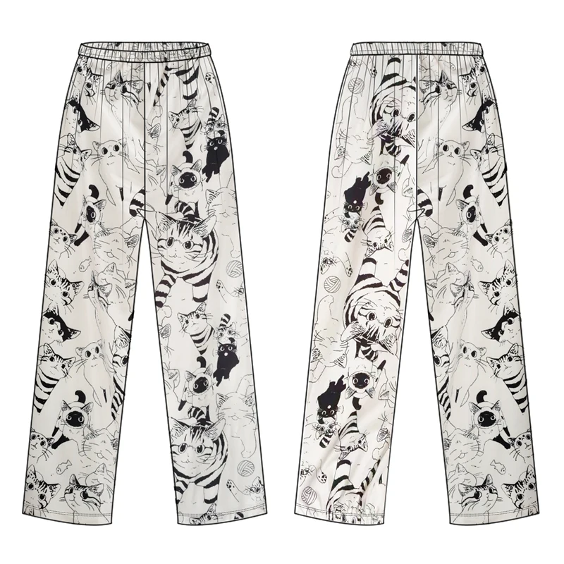These Outdoor Home Pants for Women blend cozy comfort with playful charm. Made for lounging, studying, or light outdoor wear, the soft fabric drapes loosely for unrestricted movement while an elastic waistband ensures a secure, adjustable fit. The whimsical cartoon Moe Cat Big Battle print adds a fun, youthful touch to your everyday sleepwear or casual home outfit.