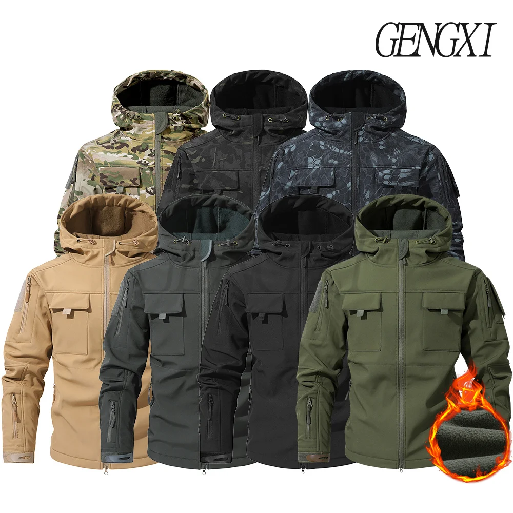 Built for unpredictable conditions, this Outdoor Softshell Fleece-Lined Jacket blends weather protection with practical tactical styling. The softshell exterior sheds wind and light rain while the fleece lining adds warmth and comfortable insulation for cool-weather activities. A hood offers extra coverage when needed and the cut allows freedom of movement for outdoor work, hiking, or everyday wear.