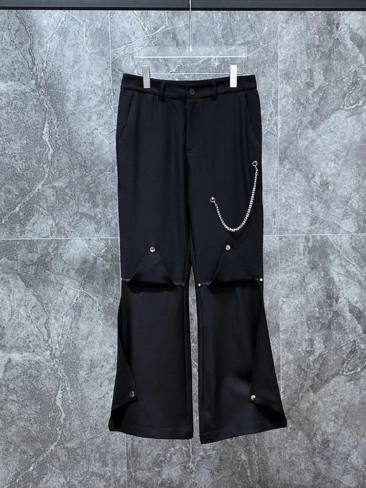 Owen Seak Men Bell-Bottoms Pants combine contemporary streetwear with relaxed comfort. These black cargo sweatpants feature a bell-bottom silhouette that tapers into a subtle flare, offering a unique take on classic joggers. Constructed from soft, mid-weight fabric, they are designed for easy layering in autumn and everyday wear.