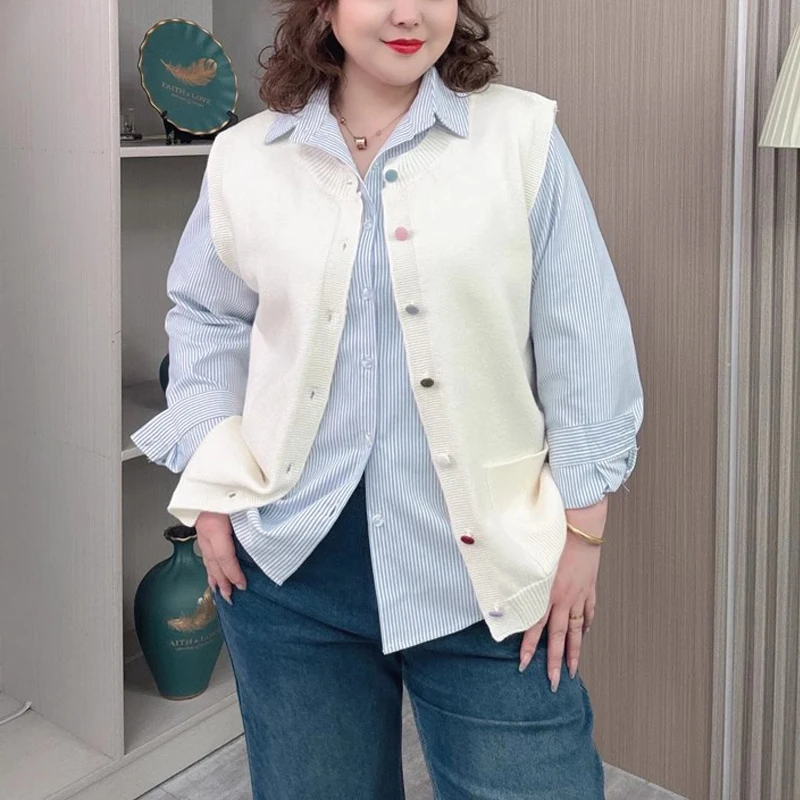 This plus-size beige V-neck knit vest cardigan offers a relaxed, versatile layer for spring and autumn wardrobes. The sleeveless, open-front design makes it easy to pair over tees, blouses, or lightweight dresses, adding warmth without bulk. A soft knit construction provides comfortable drape and everyday wearability in neutral beige that complements a range of colors and prints.