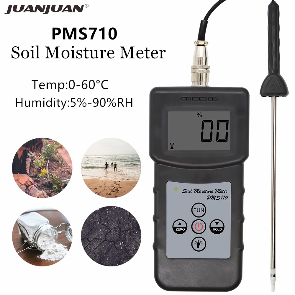 The PMS710 Soil Moisture Meter is a compact, easy-to-use soil hygrometer designed to give quick readings of moisture levels in river sand and general soil. Featuring a clear 0–50% moisture scale, it helps gardeners, landscapers, and hobbyists monitor watering needs without complex setup. The plater sensor probe inserts into the medium to deliver fast, straightforward measurements so you can make timely irrigation decisions.
