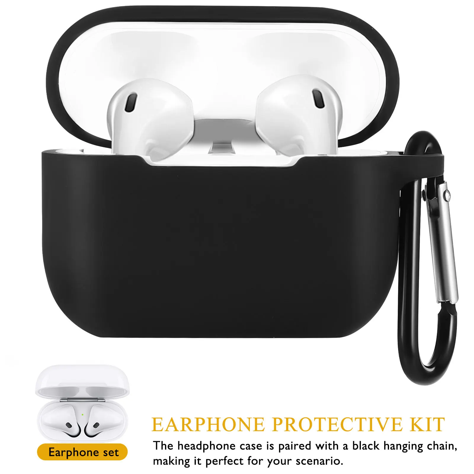 A sturdy metal carabiner clips securely to belts, backpacks, or keyrings for convenient on-the-go access, while the included comfortable anti-lost neck lanyard offers hands-free wear and extra security during travel, workouts, or commuting. The case is designed for two earphones and allows quick access when you need them, maintaining a low-profile appearance.