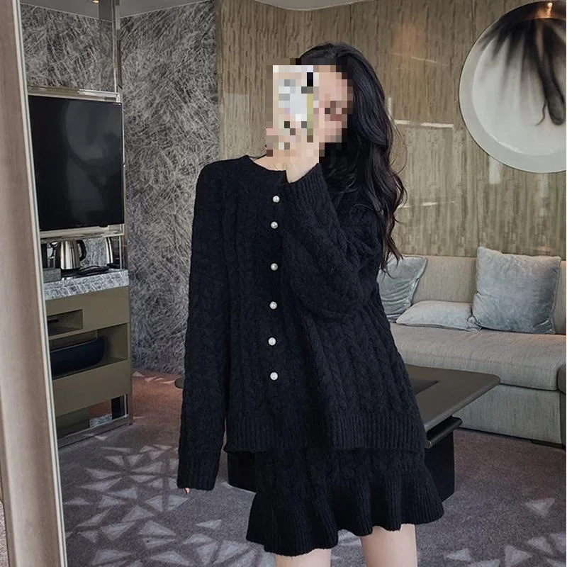 Discover PremiumKoreanWinterStyle Set Thick Textured Knit Set Cozy Oversized Pullover Set Fashionable Pleated MiniSkirt Outfit on AliExpress.