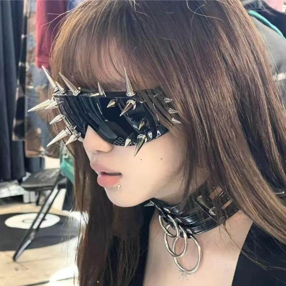 Lightweight yet striking, these shades are designed to elevate festival outfits, streetwear, or any ensemble that calls for dramatic flair. The unisex design and distinctive hardware detailing make them a versatile accessory for those who favor avant-garde style.