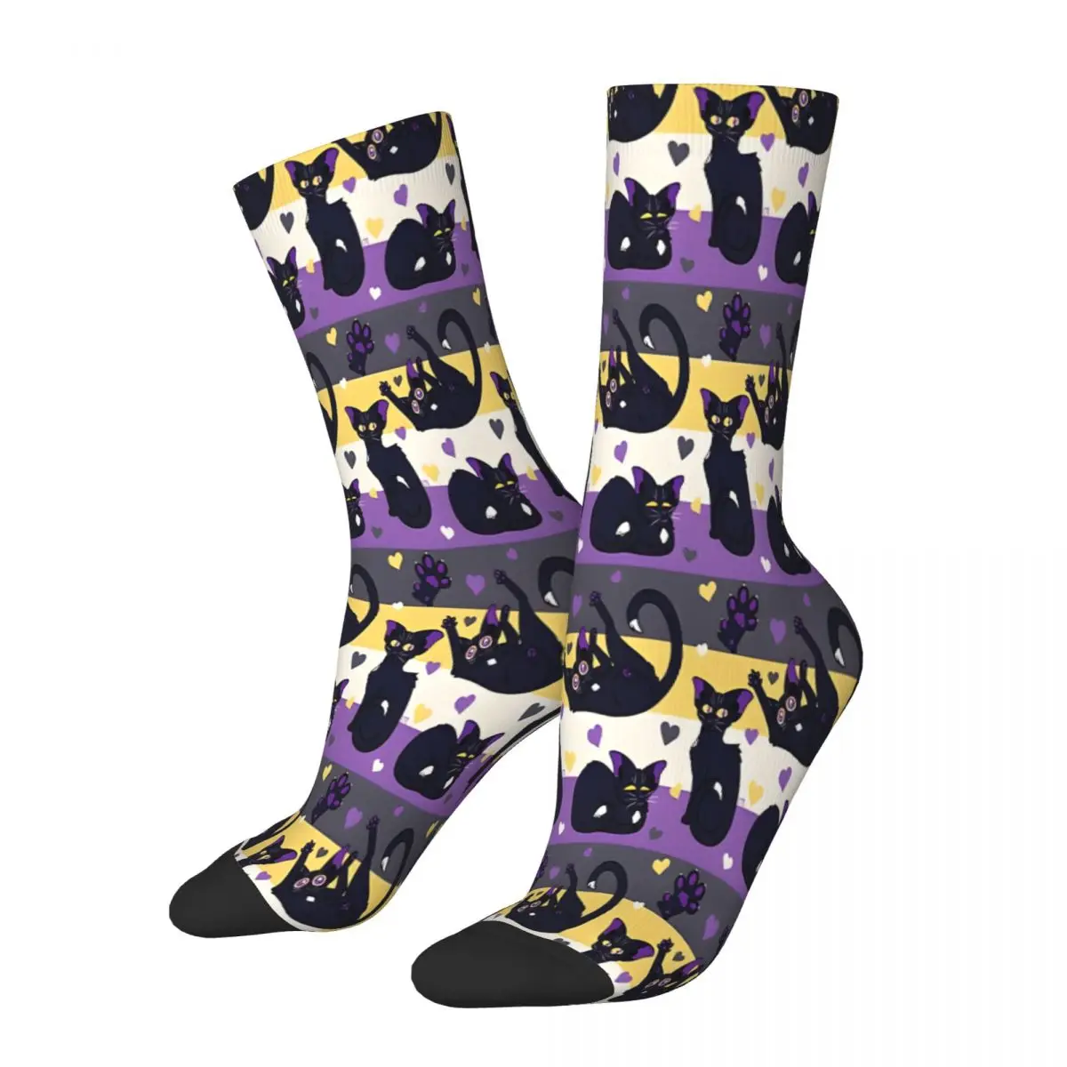 Queer Kitties Non Binary Cats Socks Male Mens Women Winter Stockings Polyester