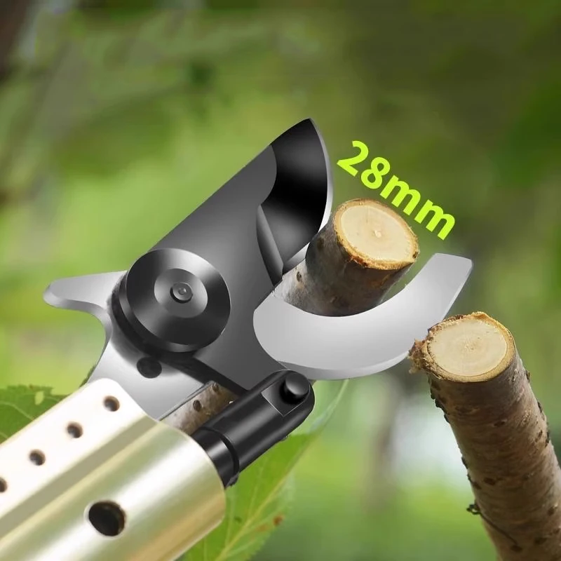 Rechargeable High-Altitude Pruning Shears — electric high-branch shears designed for trimming fruit trees, tall shrubs, and hard-to-reach limbs with less strain. This extendable pole tool combines a compact electric cutting head with a stable, lightweight shaft to increase reach while keeping maneuverability for household and garden tasks. The rechargeable motor delivers consistent cutting performance for routine pruning without bulky cables.