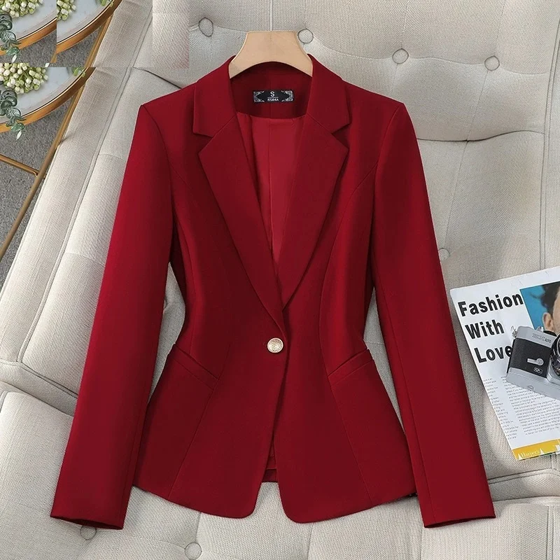 Refined and versatile, this Red Blazer for women blends professional structure with casual comfort. Tailored in a slim cut, it features a single-button front that creates a clean, flattering silhouette suitable for office hours or after-work events. The classic collar and neat lapels keep the look polished, while thoughtful seams ensure a modern, feminine shape.