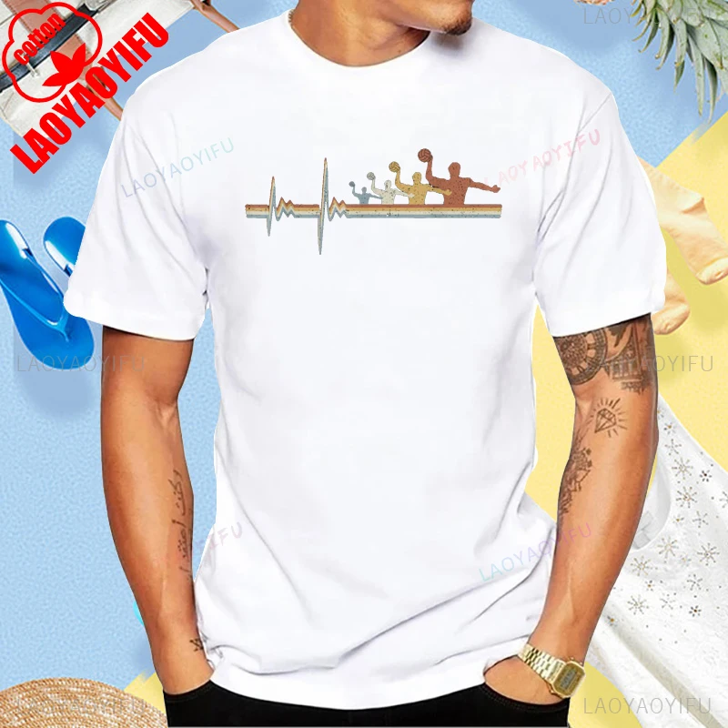 Retro Water Polo EKG Heartbeat T-Shirt Cotton Short Sleeve Casual Fashion Loose Man Tshirt Harajuku Summer Streetwear T Shirt