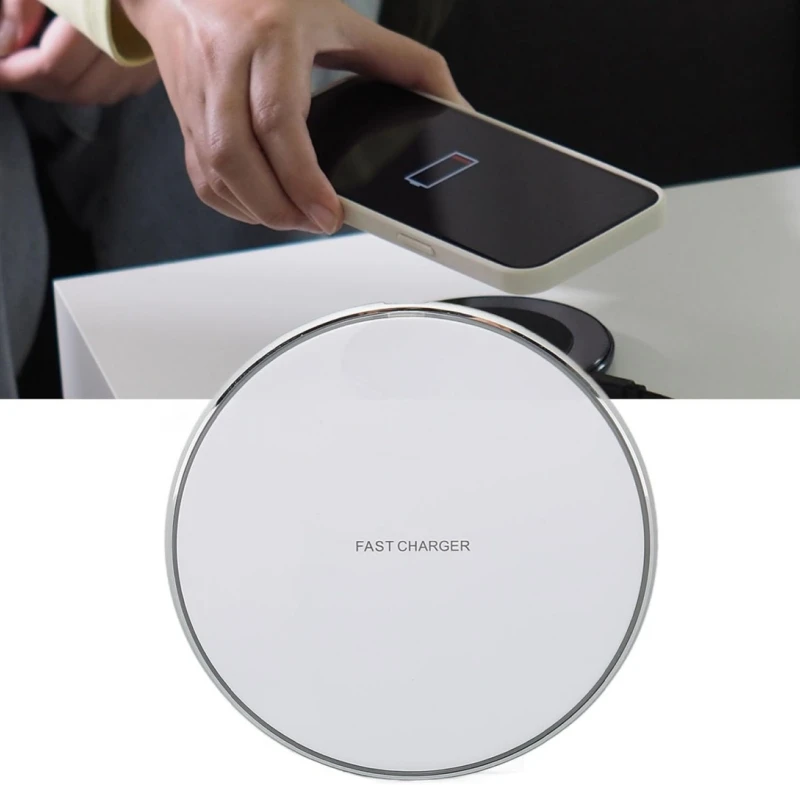 Compatible with a wide range of phones including recent iPhone and Samsung models, the charger offers reliable wireless power for everyday use. Its compact, round footprint saves desk and nightstand space while providing stable support for devices in portrait or angled viewing orientation.