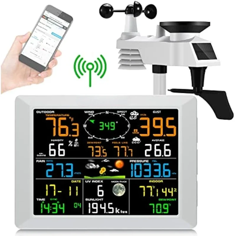 This wireless system includes an outdoor sensor for continuous environmental data and supports remote access so you can check conditions from your smartphone or tablet. Setup is straightforward, and the station stores recent data to help you observe changes over time. Durable construction and wireless range accommodate typical residential installations.