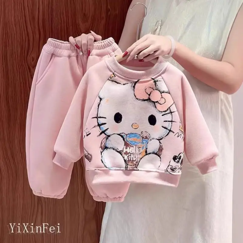 Keep cozy and cute this season with the Sanrio Hello Kitty Sweatshirt Two Piece Set. Designed for kids, this fleece-lined hoodie and matching bottoms combine softness and warmth for chilly autumn and winter days. The playful Hello Kitty motif brings a kawaii touch that kids will love, while the comfortable fit allows for active play and layered warmth.