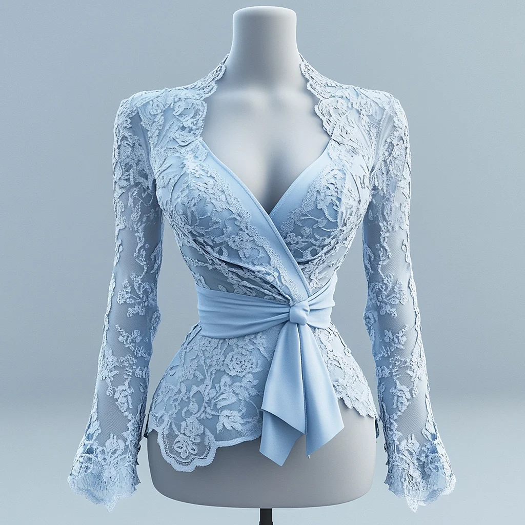 This sheer mesh lace long-sleeve top brings bold, club-ready style to your casual wardrobe. Lightweight and slightly transparent, the fabric offers a breathable, body-skimming fit with delicate lace detailing for an elevated yet edgy look. The tie-front design creates a flattering silhouette that can be worn closed or knotted for a cropped effect.