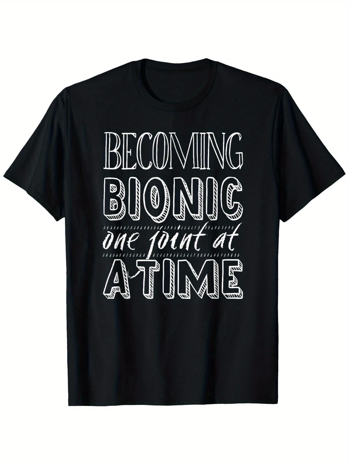 Classic black cotton T-shirt with short sleeves featuring a tasteful, unique knee-or-hip surgery design—perfect for anyone who wants a subtle, meaningful wardrobe piece. Soft, breathable fabric and a straightforward cut make it comfortable for everyday wear, whether layered or on its own. The minimalist graphic offers a thoughtful nod to recovery, caregiving, or medical professionals without being loud or overbearing.