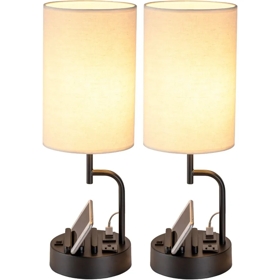 Brighten your bedside or workspace with this modern table lamp featuring three USB charging ports, an AC outlet, and integrated phone stands. Its clean, contemporary design fits bedrooms and living rooms, offering focused lighting for reading, work, or relaxing. The lamp’s built-in charging options keep phones and small devices within reach and powered without needing extra adapters, streamlining your nightstand or desk.