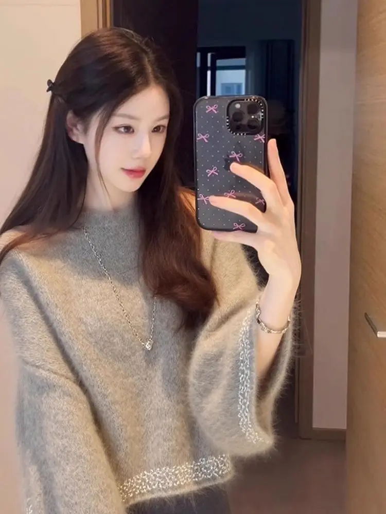 Be the first to review “Unique ey Knitted Sweater ort Sle Inner Wear Korean Faion Winter Clothes Beautiful Luxury High Quali Girls Top”