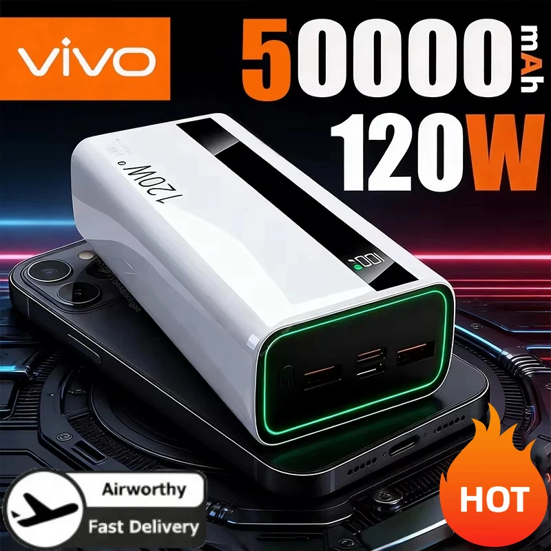 The VIVO 50000mAh High Speed Large Capacity PowerBank delivers reliable backup power for long trips, daily commutes, and power-hungry devices. With massive capacity and 120W super fast charging, this external battery is designed to replenish smartphones, tablets, and other USB-powered gadgets quickly and efficiently. Its compact, durable design makes it easy to carry while offering extended runtime when outlets are unavailable.