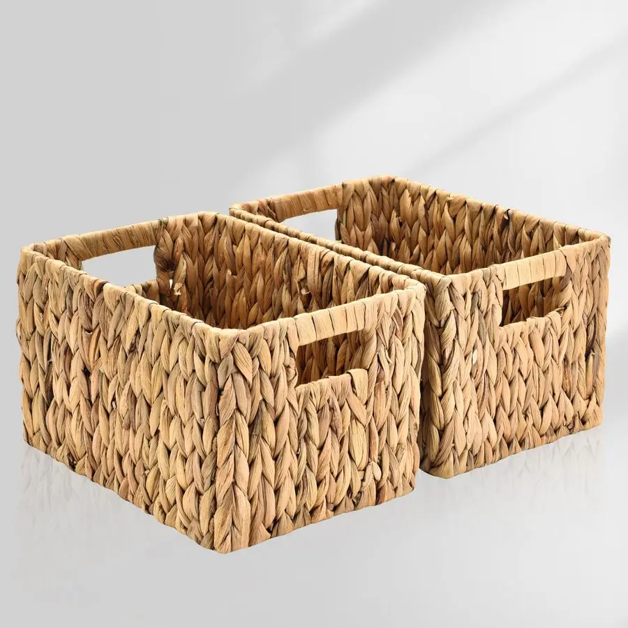 Bring natural texture and tidy organization to any room with this 2-pack of Water Hyacinth Rectangular Wicker Baskets. Handwoven from durable water hyacinth fibers, these rectangular baskets offer breathable storage for linens, toys, pantry goods or everyday clutter. The neutral, earthy tones complement a variety of decor styles—from coastal and boho to farmhouse—while the sturdy woven construction holds its shape for regular use.