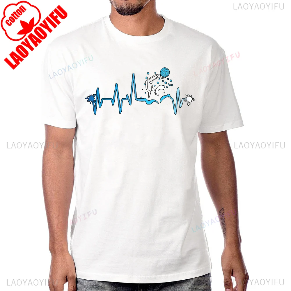 Water Polo Player Heart Beat Graphic Printed T-Shirt Short Sleeve Casual Fashion Harajuku Hip Hop Man Tshirt Cotton Women Tees