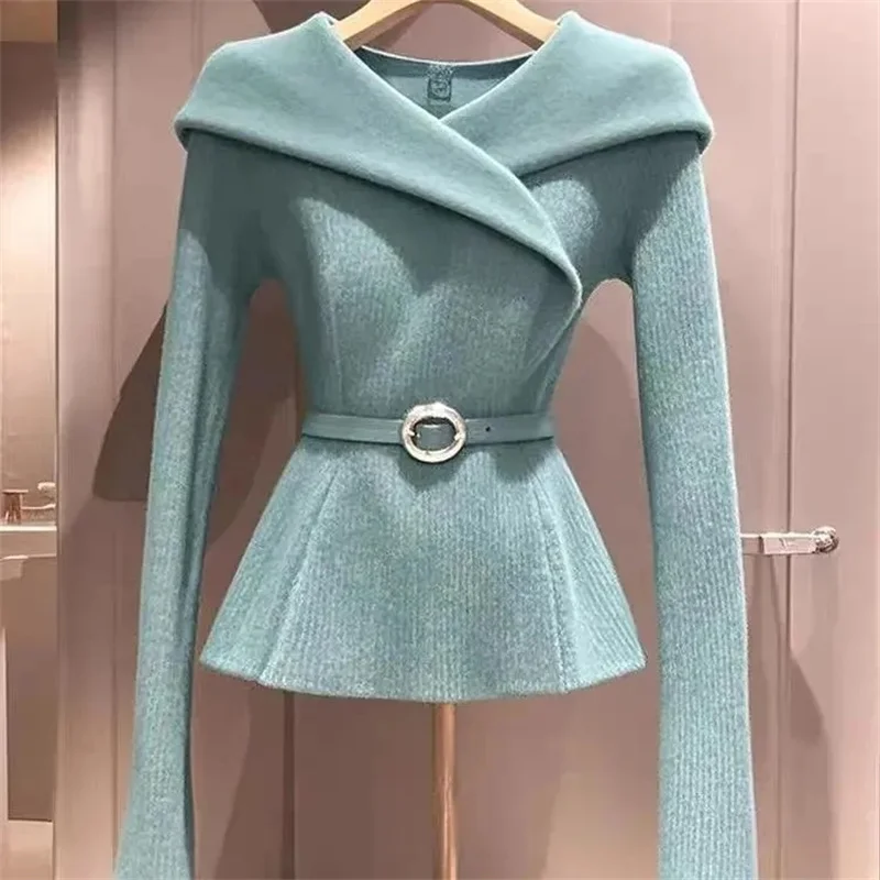 This chic 2024 sweater coat brings modern tailoring to a classic pullover silhouette. Designed with a detachable belt for a defined waist, the piece combines the warmth of a sweater with the structure of a coat, making it a versatile layer for transitional weather. The advanced design embraces clean lines and a relaxed fit that flatters a range of body types while maintaining effortless style.