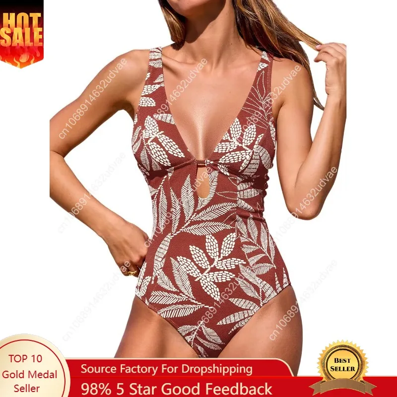 Discover a stylish and comfortable option for pool or beach days with this Women’s One Piece Swimsuit. Featuring a deep V neckline and a keyhole cutout accented by an O-ring, the design balances playful detail with flattering lines. The textured fabric adds visual interest and a subtle tactile feel, elevating a classic silhouette.