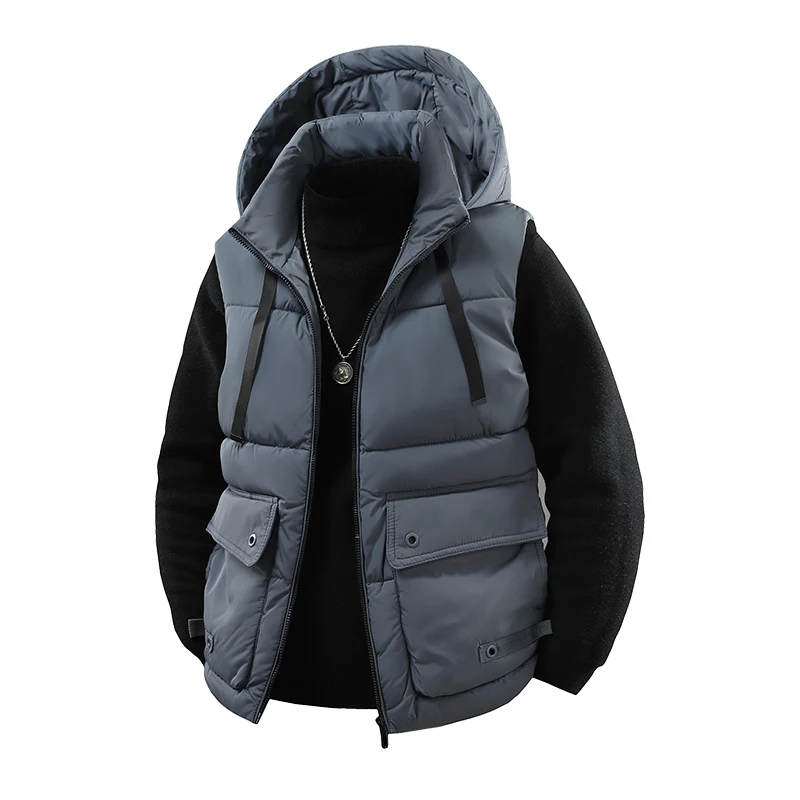 This Workwear Down Cotton-padded Jacket Vest blends practical construction with everyday comfort. Padded with down and cotton for added insulation, the vest is designed to keep you warm during cool-weather activities without restricting movement. The detachable hood gives flexible coverage when needed and can be removed for a slimmer profile. Multiple large pockets provide secure, easy access to essentials while on the job or on the trail.