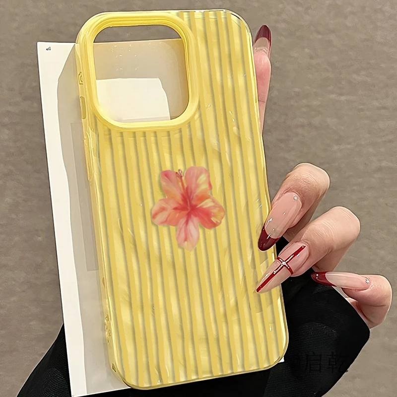 Protect your iPhone in style with this Yellow Striped Pink Flower aesthetic phone case. Designed for a range of iPhone models including iPhone 11 through iPhone 17 Pro and Plus/Pro Max sizes, the case pairs a playful pink floral motif with bold yellow stripes for a fresh, eye-catching look. The wrinkled texture adds subtle visual depth and improves grip while maintaining a lightweight profile.