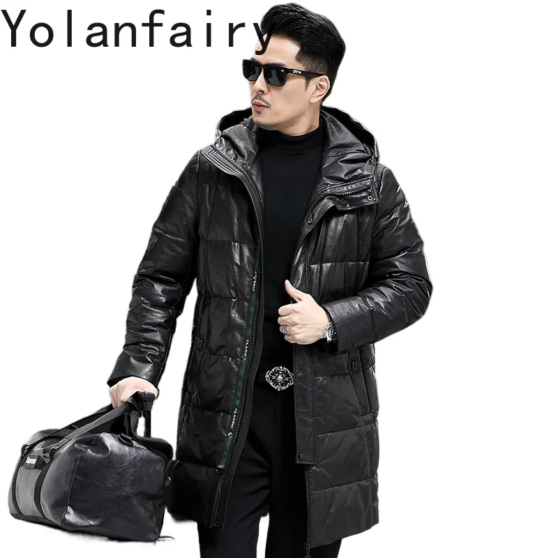 This YOLANFAIRY genuine leather cowhide jacket blends rugged durability with winter-ready warmth. The outer shell is crafted from authentic cowhide leather for a classic, long-lasting look, while the included white duck down liner provides lightweight insulation and comfortable heat retention. A hood adds extra protection from wind and cold, creating a versatile layer for seasonal wear.