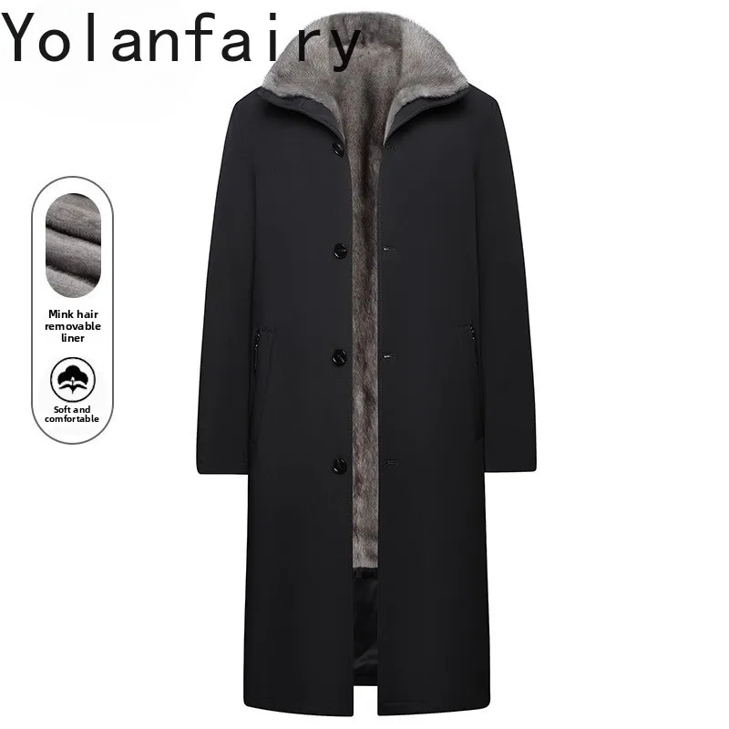 YOLANFAIRY High-end Natural Long Fur Coat Man Winter Luxury Detachable Mink Fur Liner Jacket for Men Large Size Warm Fur Parkas
